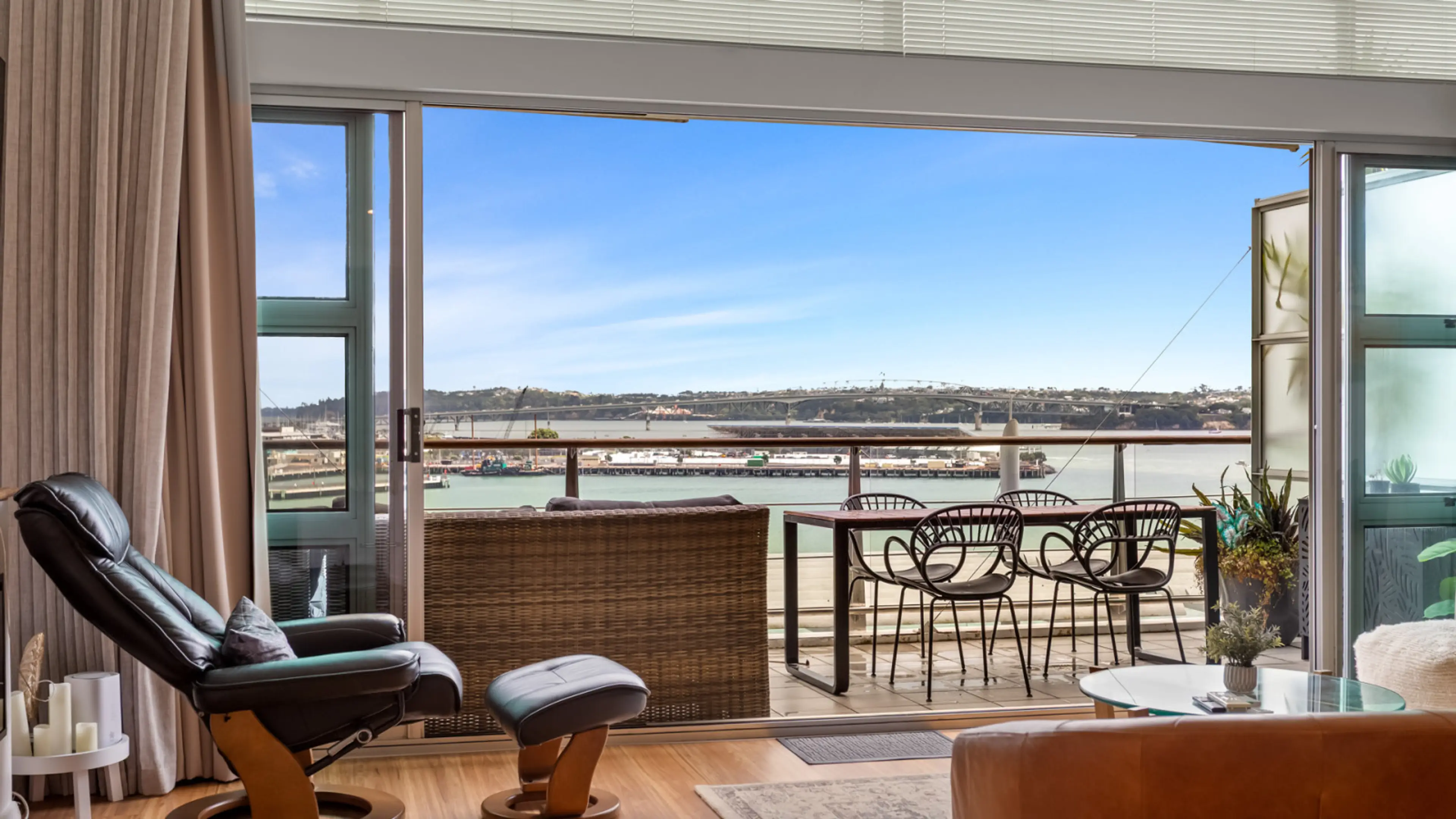 Located on the upper floors of a secure complex, this spacious 3-bedroom apartment is perfect for families or groups of up to six. Overlooking the harbour from your private balcony, this beautifully furnished apartment offers modern comfort and unbeatable access to Aucklandβs waterfront and city hig...
